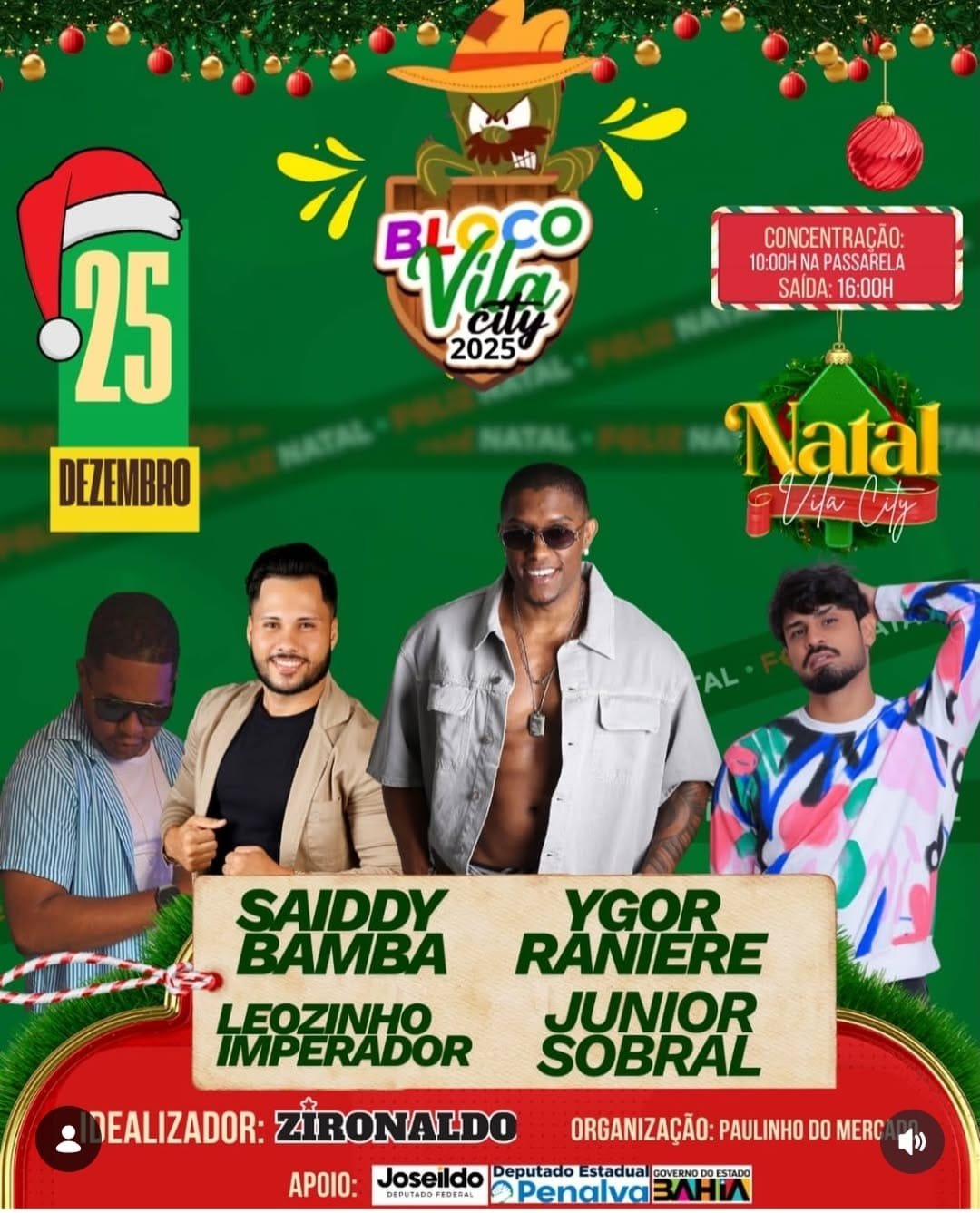 Segundo registros em redes sociais divulgados nos últimos dias, o evento contou com shows que movimentaram a vila e a orla da cidade no dia 25 de dezembro, com destaque para a banda Saiddy Bamba, referência do pagode baiano, que conduziu o público ao som de sucessos e clima de muita energia.